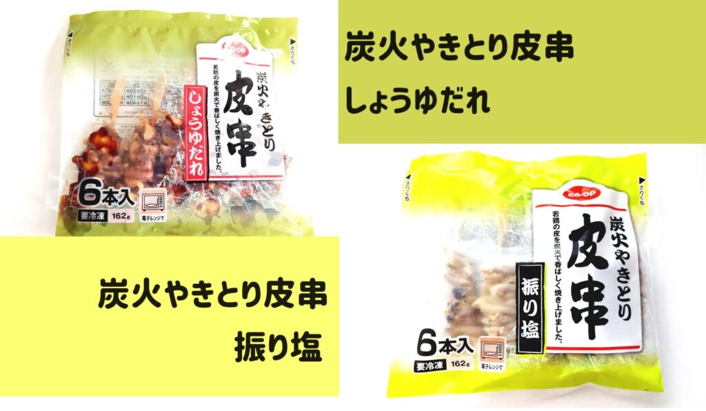 コープ「炭火やきとり皮串(しょうゆだれ)」「炭火やきとり皮串(振り塩)」かなりうまし!